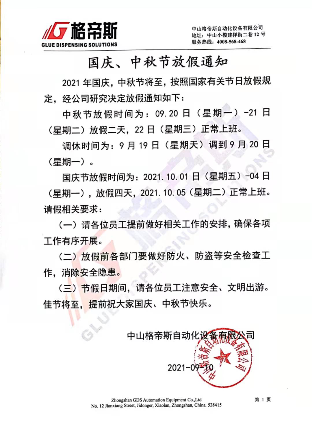 中山黄瓜网站APP观看大全自動化設備關於中秋節、國慶節放假通知安排如下